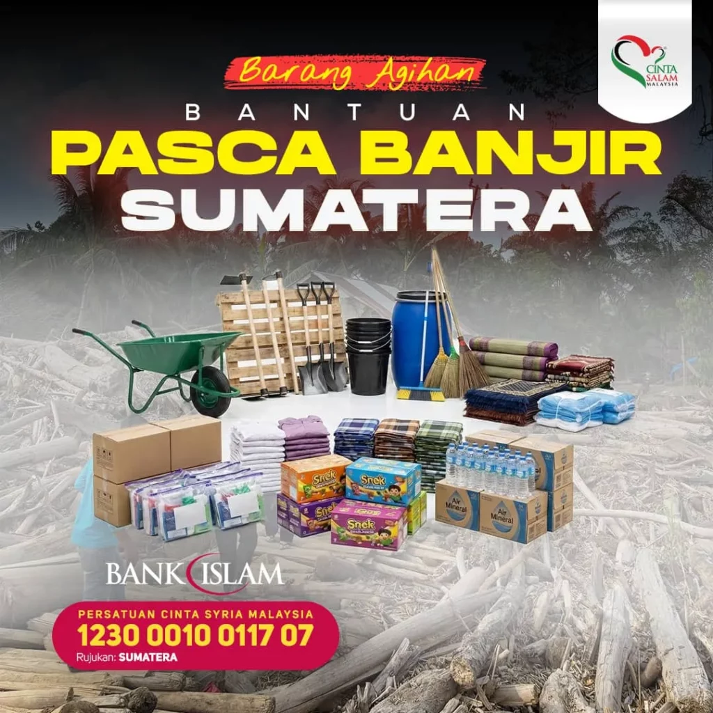 Bagi meringankan ujian mangsa banjir, Cinta Salam Malaysia melancarkan kempen “Bantuan Kecemasan Pasca Banjir Sumatera”.